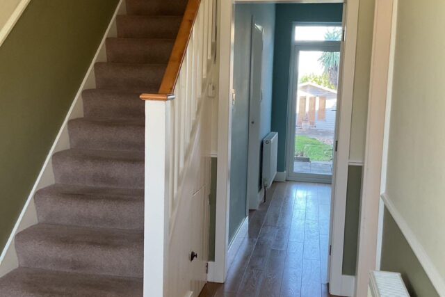 The property features three generously sized bedrooms, providing ample space for a growing family or guests. The modern bathroom is thoughtfully appointed, ensuring a pleasant experience for all. Additionally, a convenient downstairs W/C adds to the practicality of the home.
